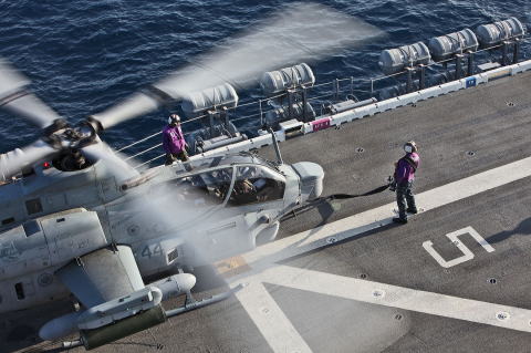AH-1Z Cobra on the flight deck of the USS Peleliu during Phibron 3 and