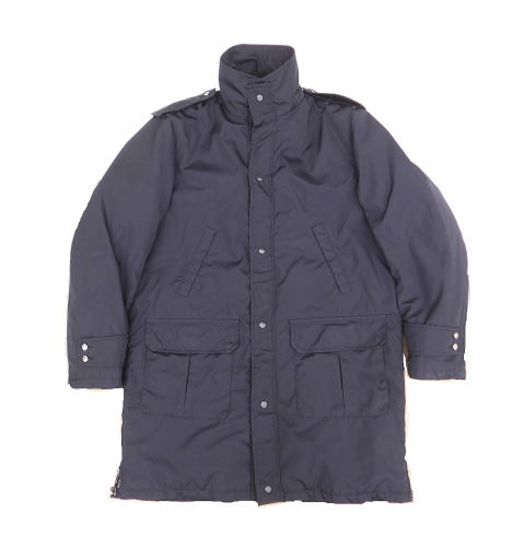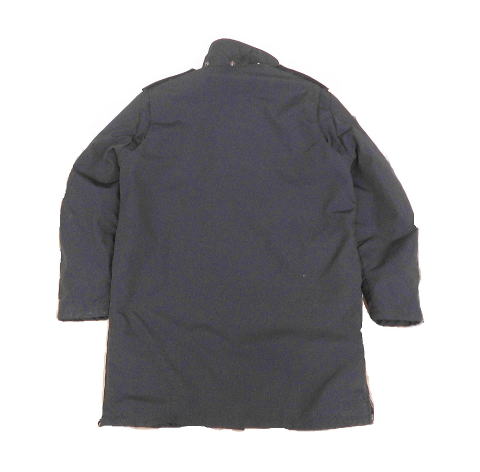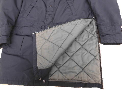 このポリスコートは寒冷地用のポリスコートです、BLAUER社製でアメリカ製となっています生地にはGORE-TEXを使用してるので防水性はかなり高いですね、寒冷地仕様ですのでコートの着丈も長く膝まで隠れる長さです、コートはキルティングのライナーですがこのライナーは他のポリスジャケットのように取り外しは出来ません、中綿はかなり厚手のものが入っていて寒冷地でもかなりの保温性を発揮してくれると思います、また後づけでフードも取り付けられるようになっていてフードの固定はスナップボタンでおこないます、ポケットの数も多くジッパー付きのインナーポケットも合わせると7個のポケットが付きます。