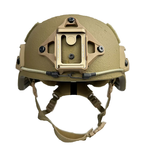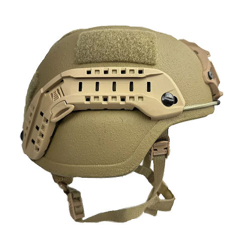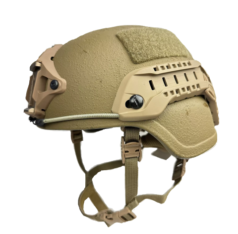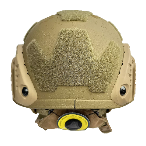 このヘルメットはアメリカ陸軍が開発した、PASGT戦闘用ヘルメットの後継で ACH(ADVANCED CONBAT HELMET)と言います、ACHはアメリカ陸軍とアメリカ空軍に採用されています、PASGTからの変更事項としてヘルメットの外殻の形状の変更、PASGTの前面の出っ張りがなくなりフラットになった、インナーのベルト類の使用をやめ7個のクッションパットを使用してヘルメット内の頭部を固定する、顎紐はハーネス型を使用し固定部位を増やしている等です、またナイトビジョン(暗視装置)を装着する為のアタッチメントを装着可能でアタッチメントを装着することでナイトビジョンのAN/PVS‐7、AN/PVS-14、AN/PVS-15、AN/PSQ-20、AN/PVS-21をヘルメットに装着出来ます。