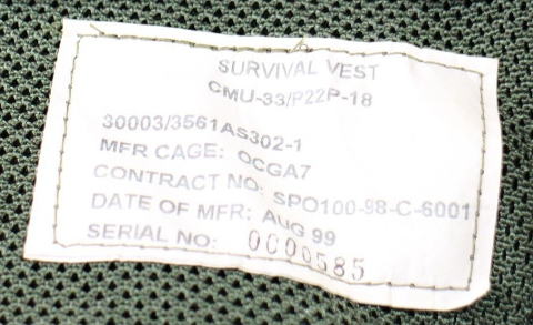 US NAVY USMC Survival Vest CMU-33/P22P-18