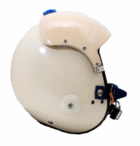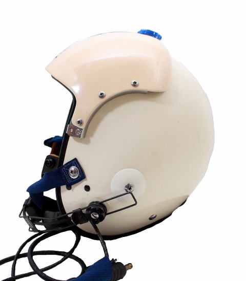 This flight helmet is the APH-5 flight helmet which was adopted by the US Navy in the late 50's. Before the APH-5, there was a prototype flight helmet called the MSA-N2 which was the first flight helmet in the Navy to have a visor housing. This was the first flight helmet to have a visor housing and was adopted by the Navy.