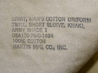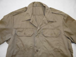 US アメリカ軍開襟襟カーキ−サービスシャツ 実物 良品 ビンテージ