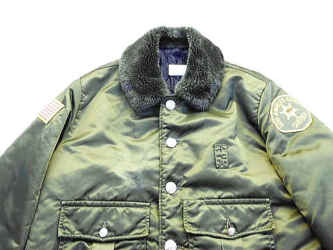 このポリスジャケットはLASD(ロサンゼルス郡シェリフデパートメント)の70−80年代に支給されていたポリスジャケットです、生地には当時のポリスジャケットの定番のタイタンクロス生地が使われています。バッジタブ付き、ボア襟付き(取り外し不可)インナーライナーはキルティング加工、前を留めるのはジッパーとメタルボタンです、当時はこのタイプのポリスジャケットが主流でした。