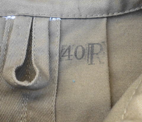 カーキーとイエローがかったカーキーが見られる。またモデファイも多く見られ肘 膝にキャンバス地生地を補強として縫い込んでる例が多く見られます