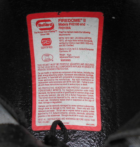 US FIRE FIGHTER HELMET By BULLARD MODEL 2100 ”FIREDOME 2” ”METRO”