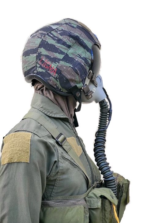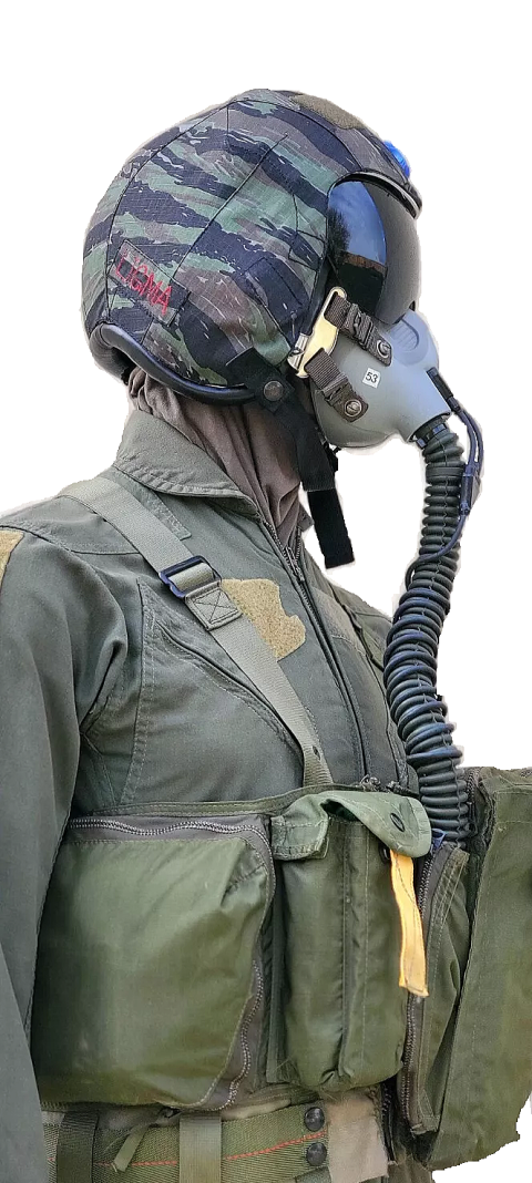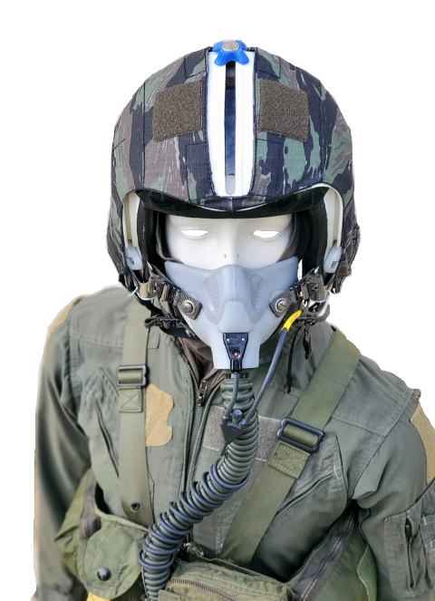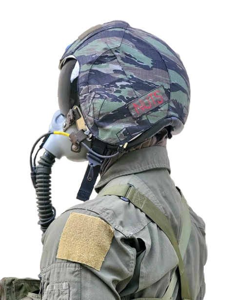 このHGU-33/P フライトヘルメットにはタイガーストライプ迷彩のヘルメットカバーが付いています