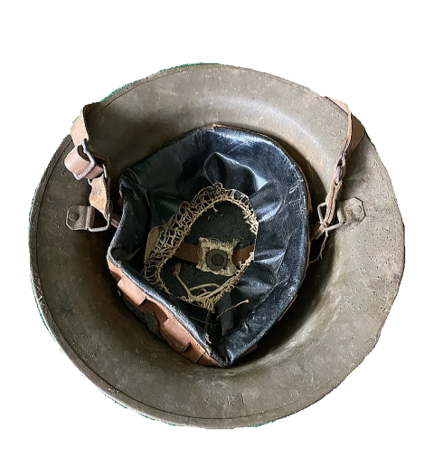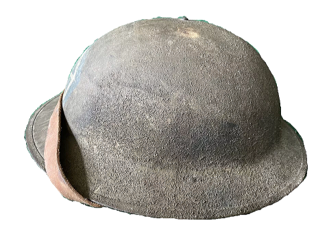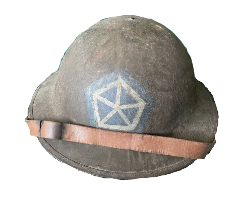この戦闘用ヘルメットは第1次世界大戦時の1917年に採用されアメリカ陸軍に支給されたヘルメットです、ヘルメットの原型はイギリス軍に採用されたブロディ‐ヘルメット(開発者の名前がジョン レオボルト ブロディ‐)でイギリスから購入した40万個のヘルメットを元にアメリカ陸軍が生産を開始し1918年から支給が開始されます、終戦までにアメリカでは150万個のヘルメットが作られました。