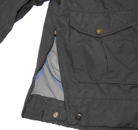 ハンドガンをジャケットの外に出して置くためのサイドスリット、ポリスジャケット特有の装備です