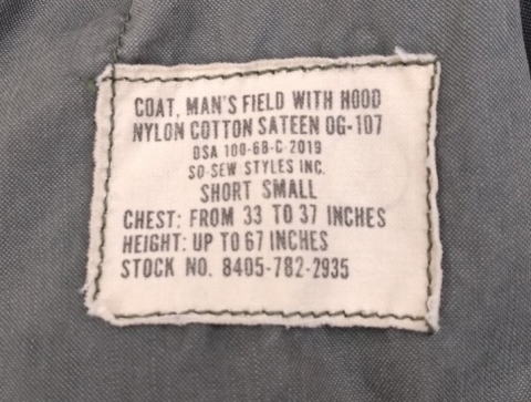 アメリカ軍 フィールドジャケット 資料 データー 細部 詳細 アメリカ陸軍 戦闘服 ミリタリージャケット実物資料 写真 年代別 各種 ミリタリー 被覆 実物 年代別 詳細 資料US