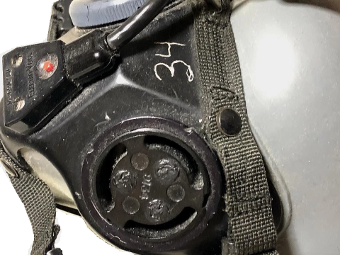 This flight helmet is a US Air Force HGU-55/P Combat Edge flight helmet, COMBAT EDGE (Combined Advanced Technology Enhanced Design G-Ensemble). COMBAT EDGE is a high-G pressure breathing system that improves the body's resistance to high G-force maneuvers and prevents loss of consciousness due to high G-force.