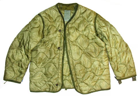 M-65には別にライナーを取り付けることが出来ます、このキルティングライナーを取り付けることにより、更に気温の低い地域にも対応できます、ライナーはジャケットの内側に取り付けてあるボタンを使用して固定します、M-65がサイズに余裕を持たせてあるのは、ライナーを使用することを前提としているからです