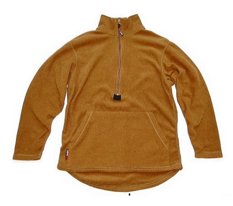This is a fleece shirt made by Polartec for the USMC, it is a desert color, as the name suggests it is a shirt with a thin fabric, there is also a fleece jacket made by Polartec but that has a thicker fabric. The pockets are connected on both sides like a hoodie.