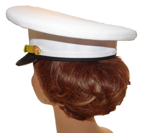 USMC United States Marine Corps アメリカ海兵隊の制帽です、このホワイトのタイプは式典等で着用するもので通常勤務で着用するものはオリーブグリーン色となります、USMC アメリカ海兵隊の制帽の記章はメタル製です、ホワイトの制帽には金色のUSMC記章、グリーンの制帽にはブラックの記章を使用します