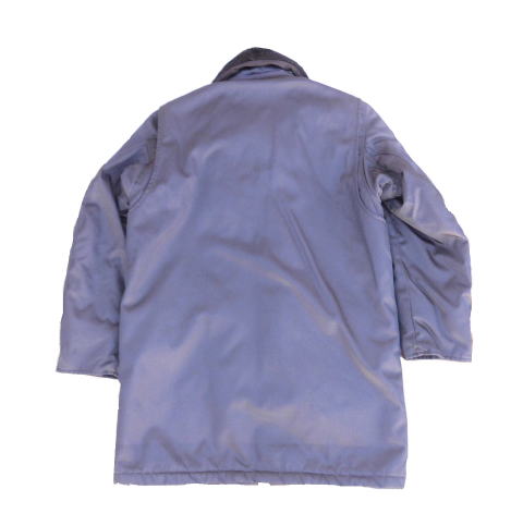 インナーは中綿入りのキルティング加工で保温性も高くなっています、左袖にペン差し付き、アクションプリーツ付き、ポケットも大型のものが多く付き収納は十分です、更にこのハーフコートにはLAPD ロサンゼルス市警察のメトロデビジョンのワッペンが付けられています、ワッペンがあるとカッコよさも違いますね、機能満載のポリスハーフコートとなっています、またタイタンクロス生地製のジャケットは現在では使用されていませんのでその独特の生地の光沢も魅力となっています。