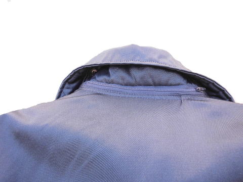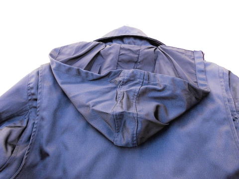コートにはバッジタブ付き、無線機用マイクを取り付けるタブ付き、ボタンで取り外し可能なボア襟付き、ジッパーで収納出来るフード付き、
