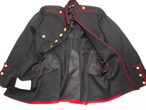 世界最強の海兵隊 USMCの式典用下士官制服です、とにかく派手ですのでニュース等でも見ることも多いと思います、ホワイトハウスの警護のUSMCアメリカ海兵隊も常時着用しています、色は濃いブルーで各所に赤の縁取りが見れます、ボタンも金ボタンですのでかなり見栄えはいい制服です、特徴としては襟が詰襟タイプになっています。