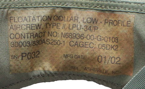 #US NAVY#Pilot#MIlitary#Floatation Collar Low Profile Air Crew Type 2 LPU-34/P#救命胴衣#浮き袋#非常用#アメリカ海軍#フライト装備#データー資料#写真#種類#資料#アメリカ海軍パイロット#フライトヘルメット#フライトジャケット#US