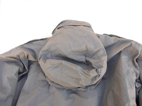 | 襟に収納式のフード付き シェリフのメタルボタン付き |