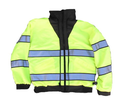 | リバーシブルジャケット 裏面はイエローカラー リフレクティブテープ付き 背中に |